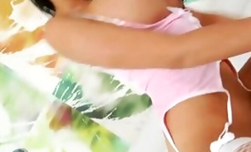 Transgirl Kimberlee in bikini have bareback sex with a stud partner